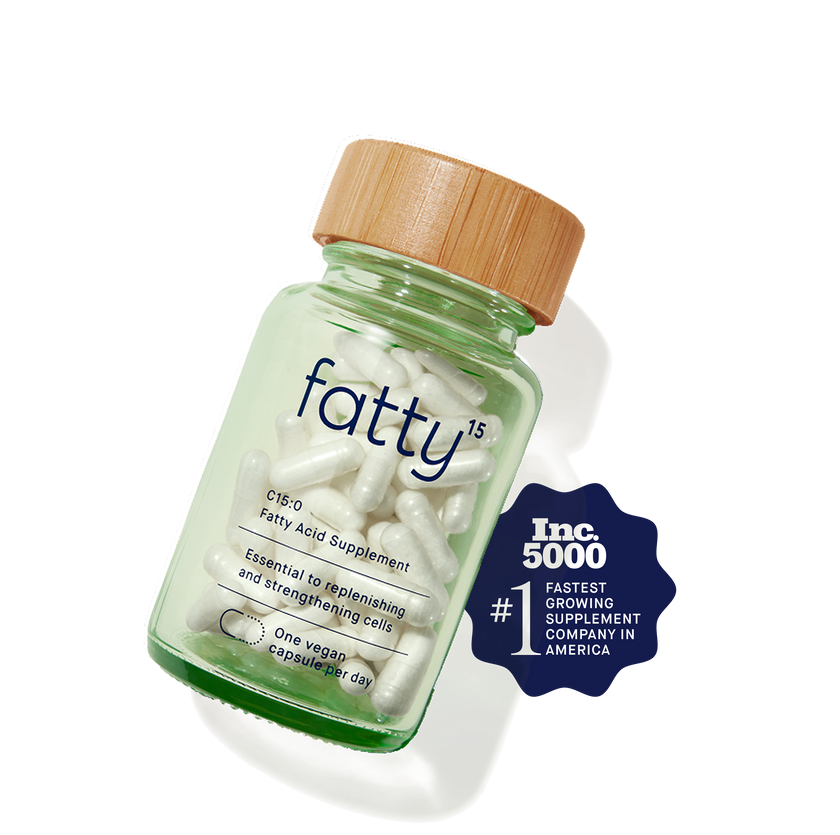 Fatty15 (C15:0) is an odd-chain saturated fatty acid, while omega-3s are polyunsaturated fatty acids. While both are beneficial fats that support healthy immune responses, they also have very different roles. For example, fatty15 is a sturdy fat that strengthens our cell membranes and protects them against age-driving lipid peroxidation. In contrast, omega-3s are less stable fats that make our cell membranes flexible but more susceptible to oxidation, especially as we age. The bottom line: Our bodies use both C15:0 and omega-3s to stay healthy, and they can and should compliment each other. The upsides of fatty15 with pure C15:0? Tiny pills with no smell, no taste, and no burps. Better yet, when tested head-to-head against pure EPA, fatty15 had 3x more cellular benefits relevant to our immune, metabolic, heart, and liver health. We recommend working with your healthcare provider to determine what supplement stack is best for you.