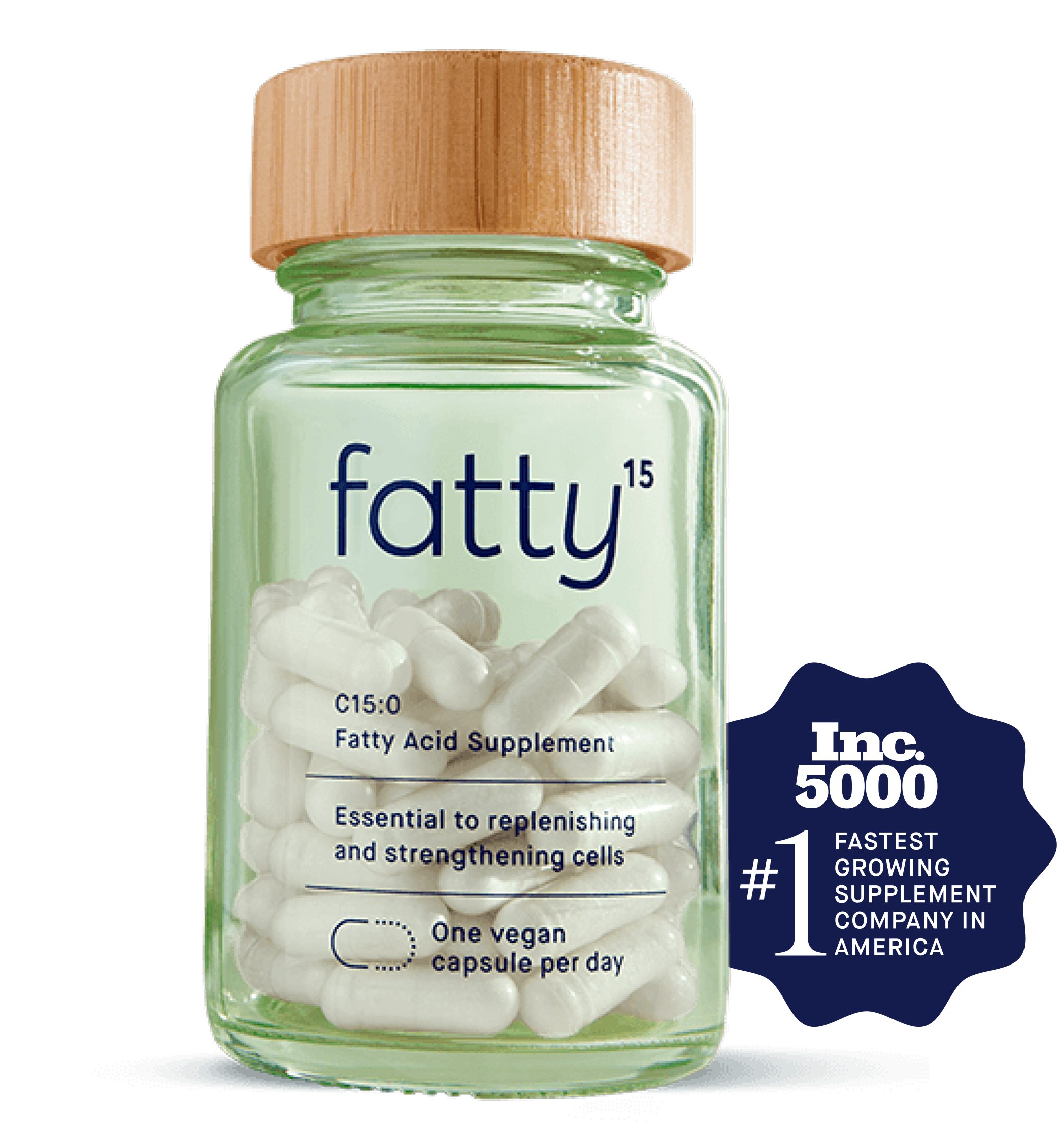 Fatty15 (C15:0) is an odd-chain saturated fatty acid, while omega-3s are polyunsaturated fatty acids. While both are beneficial fats that support healthy immune responses, they also have very different roles. For example, fatty15 is a sturdy fat that strengthens our cell membranes and protects them against age-driving lipid peroxidation. In contrast, omega-3s are less stable fats that make our cell membranes flexible but more susceptible to oxidation, especially as we age. The bottom line: Our bodies use both C15:0 and omega-3s to stay healthy, and they can and should compliment each other. The upsides of fatty15 with pure C15:0? Tiny pills with no smell, no taste, and no burps. Better yet, when tested head-to-head against pure EPA, fatty15 had 3x more cellular benefits relevant to our immune, metabolic, heart, and liver health. We recommend working with your healthcare provider to determine what supplement stack is best for you.